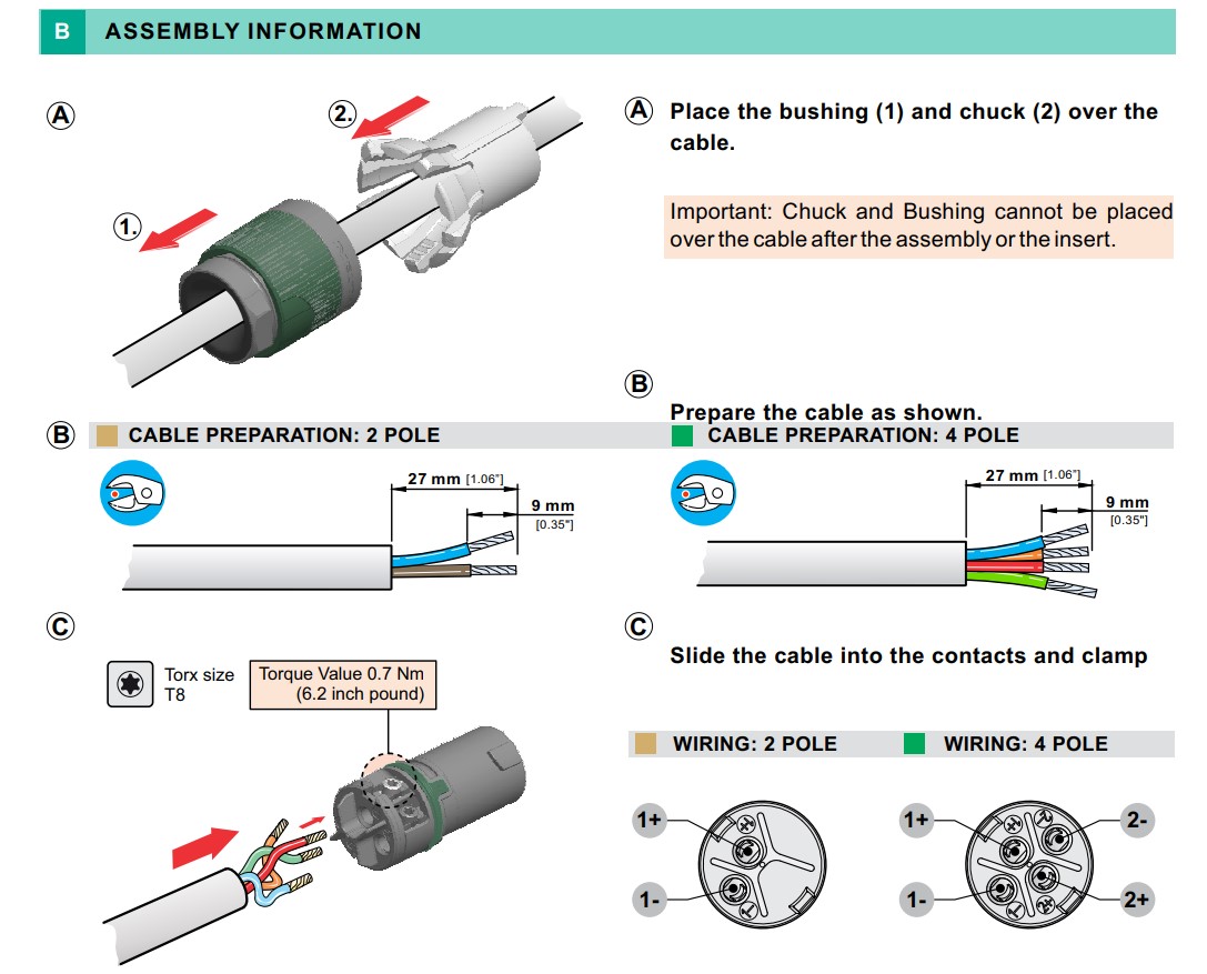 Đầu nối cáp speakON 2 cực, cụm đầu nối vít, bộ giảm ứng suất loại kẹp cho đường kính cáp từ 6 đến 12 mm