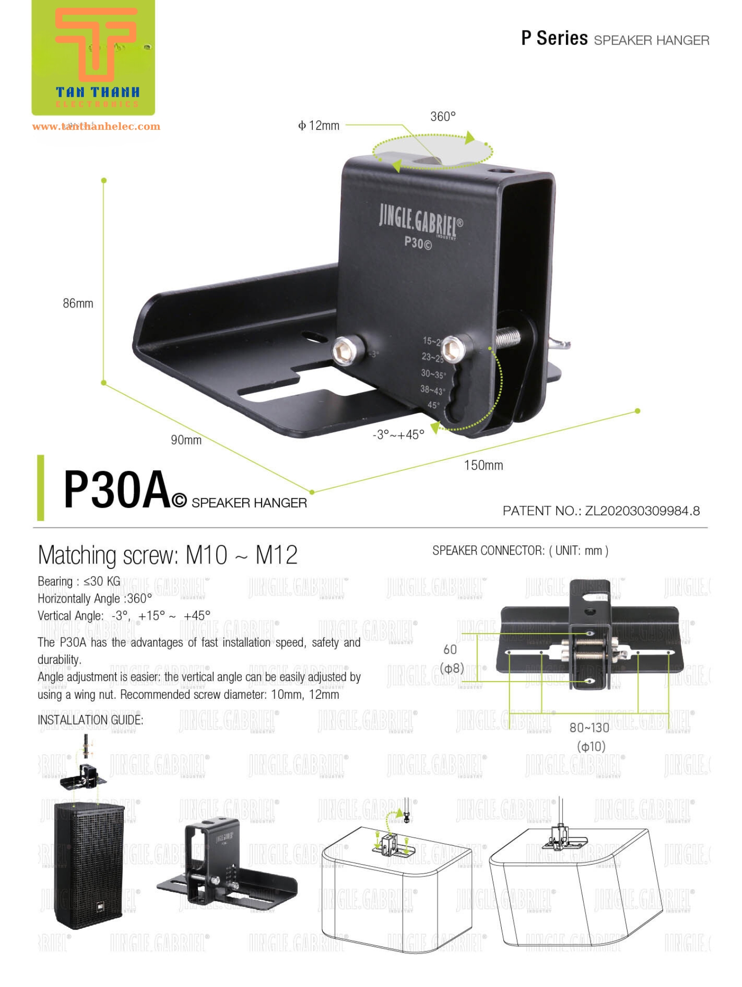 Móc treo loa cao cấp P30C là một giải pháp hoàn hảo cho việc treo loa trần, mang đến sự tiện lợi, chắc chắn và an toàn cho không gian âm thanh của bạn. Với khả năng chịu lực lên đến 30 Kg, móc treo loa P30C đáp ứng được nhu cầu của hầu hết các dòng loa trên thị trường. Sản phẩm nâng cấp thêm độ chịu lực và góc bẻ nghiêng hơn phiên bản P30A
