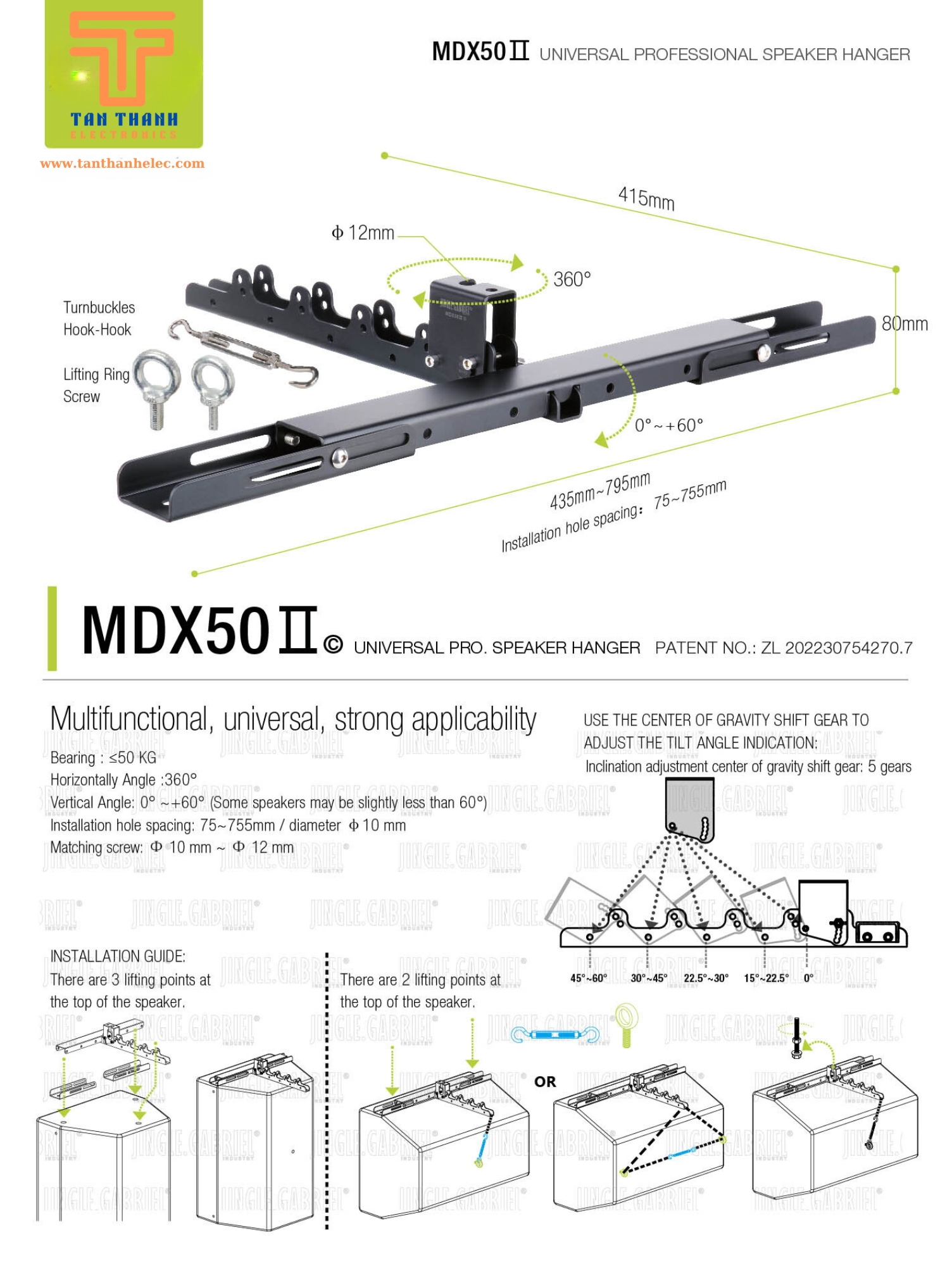 Thông số kỹ thuật của Móc treo loa MDX50Ⅱ: