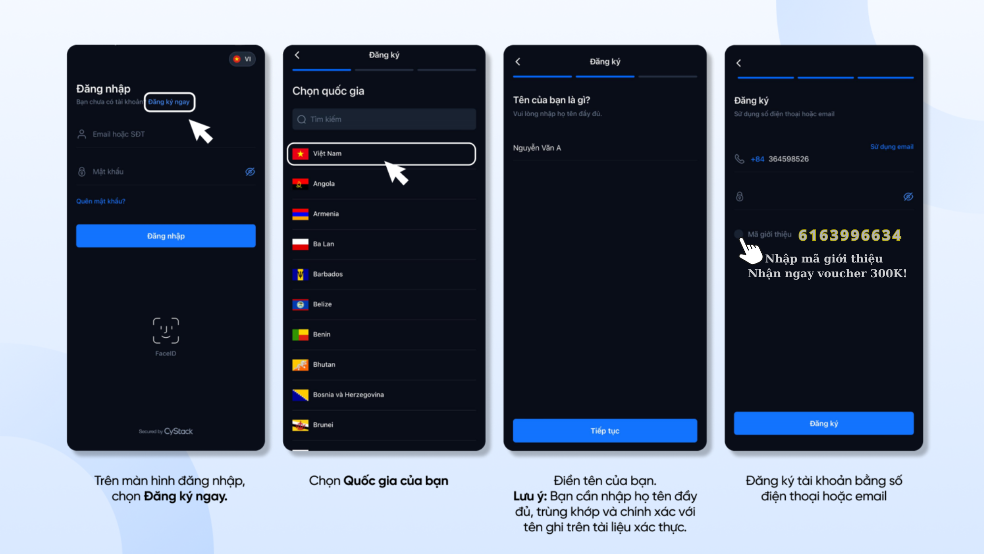 - Đăng ký tài khoản bằng số điện thoại hoặc email