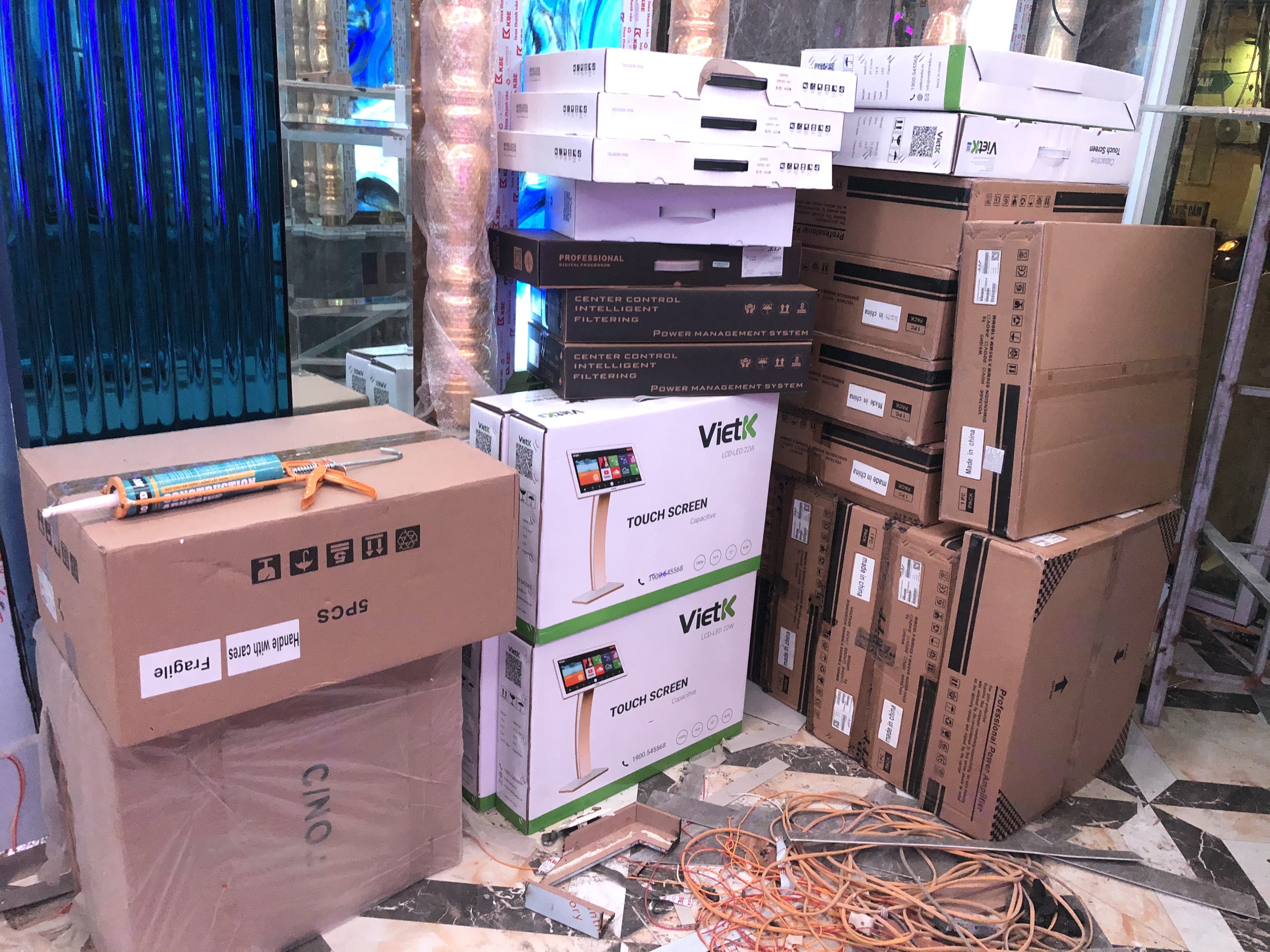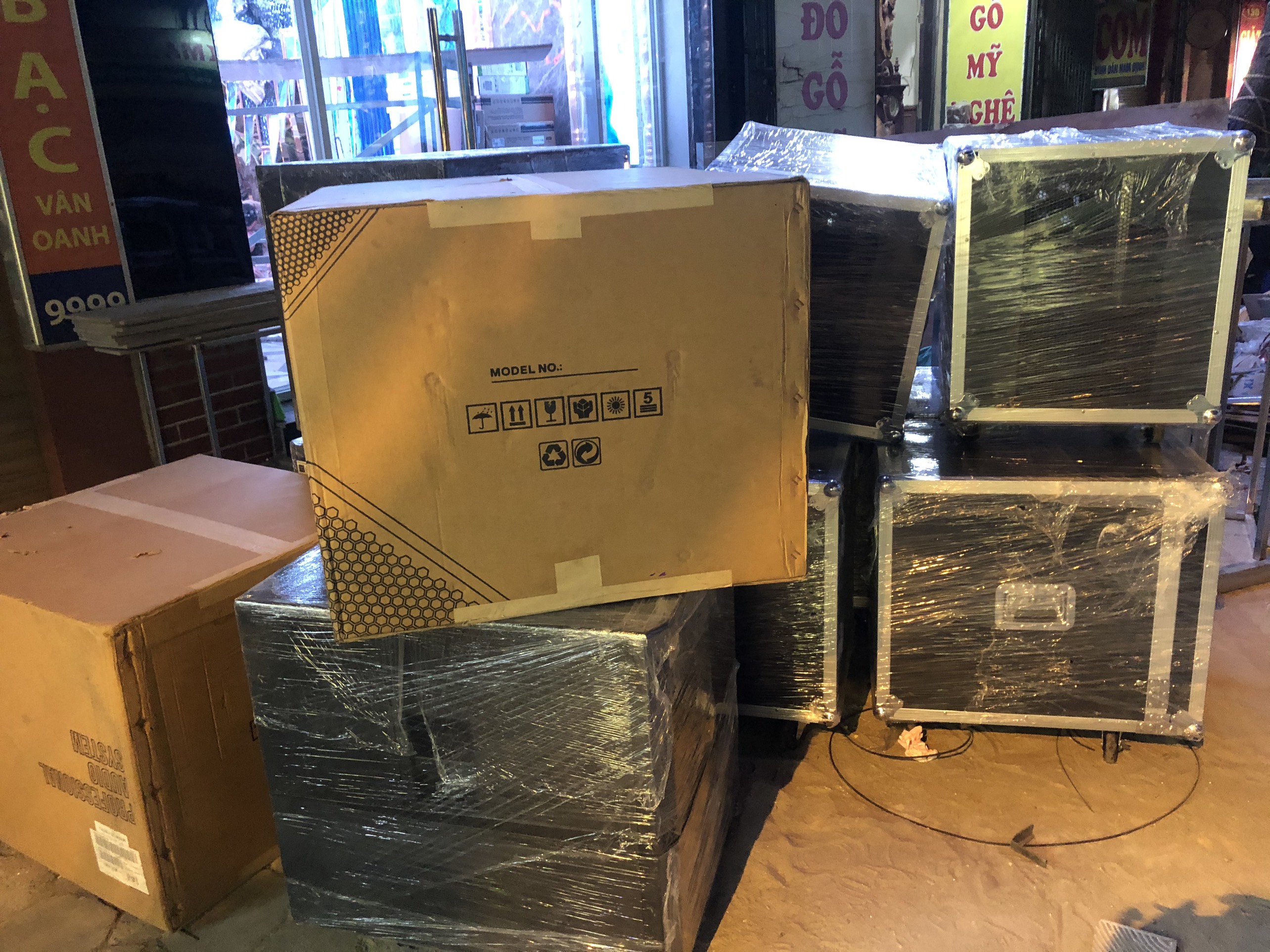 Thiết bị phụ kiện âm thanh chuẩn bị tập kết nên đường bàn giao lắp đặt.